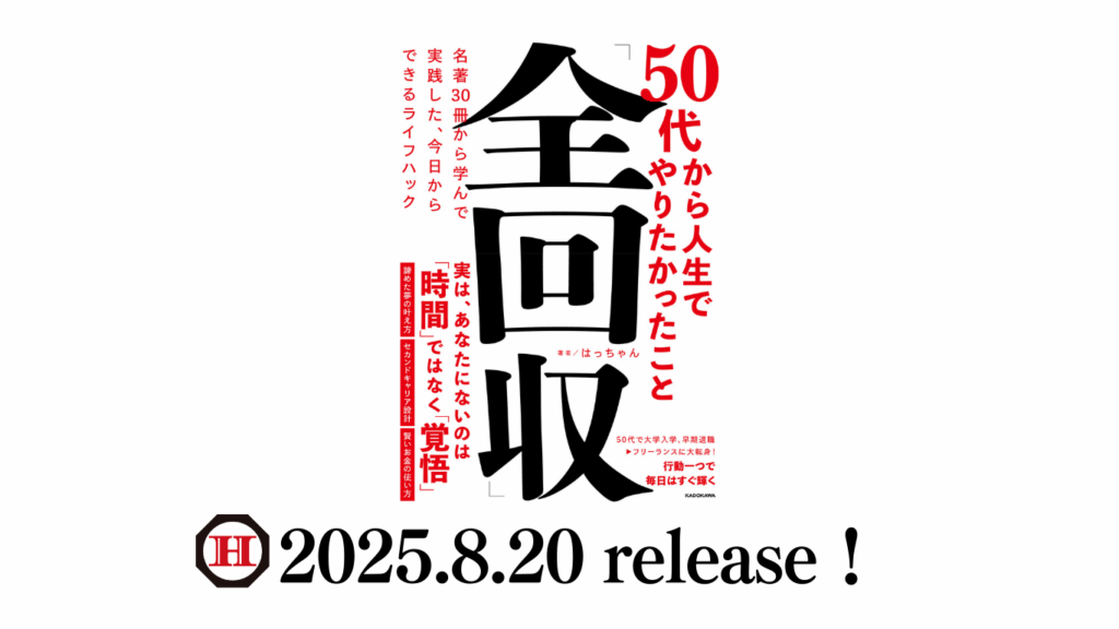 2025年8月20日 KADOKAWAから出版いたしました! タイトルは 『50代から人生でやりたかったこと「全回収」』 全国書店で好評発売中! 名著30冊を参考に実践した、ワタシが人生を変えたライフハックを すべてご紹介しています! なぜ、50代から...