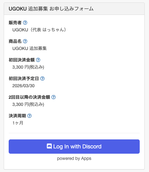 申込時に、Discordのアカウント連携があるため、