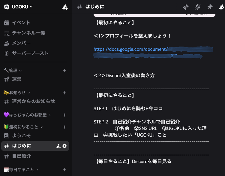 記載のDiscordの招待リンクから、UGOKUサーバーへお入りください。
